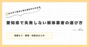 そんなお悩みをお持ちの方のために、この記事では 「愛知県で失敗しない解体業者の選び方」 をテーマに、次のポイントを詳しく解説します。
